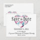 Mande o anúncio "Salve a data" para a data do seu casamento com burgundy e teal tree art em forma de texto de coração e modelo. Personalize o texto frontal e traseiro nos campos de modelo ou clique em personalizar para selecionar um estilo de tipo, tamanho e cor preferidos.