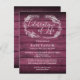 Um convite de cartão postal para uma celebração rústica da vida com uma grinalda de folhagem desenhada à mão sobre um fundo de painéis de madeira vermelha. Criado por Thisisnotme©