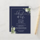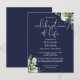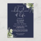 Um elegante convite cartão postal de celebração de vida e lembrança personalizado com água-forte botânico azul marinho. Concebido por Thisisnotme©