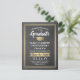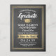 Compartilhe as notícias alegres de uma próxima festa de formatura com folha de ouro personalizada e quadro de fotos, salve os convites de cartão postal. A imagem e o texto deste modelo são simples de personalizar com o nome do formando, o ano de aula e outros detalhes do lançamento da sua escolha. O design apresenta um fundo de quadro negro e falho impresso para cinzas, elegante borda listrada, caligrafia na moda moderna, tipografia clássica vintage e uma foto favorita, como uma foto de mais velho ou uma imagem da cerimônia de inicio. Por favor, note que o ouro é impresso a cor verde e não a folha metálica. Estes cartões de na moda são uma maneira elegante de compartilhar uma celebração especial de dia com a família e os amigos. Parabéns ao formando!
