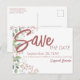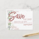 Dê aos seus convidados um aviso prévio deste próximo evento com um cartão postal. Envie o anúncio de "Salve a Data" para o seu chá de noiva com uma borda floral ao longo do lado esquerdo do cartão postal.