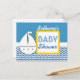 Cartão Postal De Anúncio CHUVEIRO DE BEBÊ Chevron Azul e Barco à Vela para