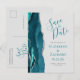 Cartão Postal De Anúncio Cinza de Agata Azul Teal Guarda a Data