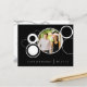 Um preto e branco moderno salve o cartão-postal com vários círculos e uma foto do casal feliz. Para obter mais informações sobre o meu artigo de casamento, visite www.darmanddesigns.com