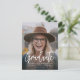 Um cartão postal de anúncio de formando de script simples e moderno para o seu segundo grau ou formandos. Adicione sua própria foto de na moda. Foto com formando de script e sobreposição de tipografia branca na foto.