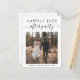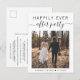 Cartão postal de anúncio de casamento moderno ou de fuga para um casamento menor e convite de recepção para informar familiares e amigos que você se casou em uma pequena cerimônia de casamento íntima, e para convidá-los para uma recepção de casamento. A frente apresenta a foto do seu casamento e "Festa Feliz para Sempre" em uma mistura de tipografia simples e um script moderno com floreios. Sob sua foto você pode adicionar seus primeiros nomes e data do casamento. No verso você pode personalizar sua mensagem e convite em mais detalhes, inserir o endereço URL do seu site de casamento para criar um código QR para que seus convidados o leiam para obter mais informações e responder online, e adicionar seus nomes em um script semelhante a uma assinatura.
