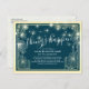 Modelos de Cartões Postais de Casamento Moderno - Script de Lettering Elegante, Quadro Floral Dourado Vintage e Luzes de String Modernas em Fundo Azul Damasco. Adiamento / Cartão de Anúncio / Permanecer em casa / Manter-se seguro / Mudar o plano / Mudar a data / Excluir a data / Adiar / Ainda fazemos, Ainda vamos / Nova data / Atraso a data / Amor é Paciente / Reprogramado / Novos planos / Salvar a data / Salvar a nova data / Atrasar nossa data / Acontecimentos Nossos cartões de adiamento são uma forma rápida e fácil de informar os convidados sobre a mudança . Rápido e fácil de personalizar online.