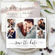 Elegante Orçamento Moderno de Caligrafia Script 5 Cartões salve a data de Colagem de Fotografias. Esta delicada design romântica minimalista perfeita para o casamento moderno. Apresenta (5) 5 imagens de grade, uma caligrafia química em letra maiúscula com estilo à mão. A foto do cheio traseiro com uma camada translúcida, você pode adicionar seus detalhes e informações de casamento. É fácil personalizá-lo com seus detalhes e fotos do casamento.