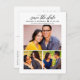 Anuncie o seu casamento em estilo com estes chic, salve a data em que os cartões postais de lançamento apresentam uma colagem de três (3) fotos de noivado com um moderno design de roteiro de caligrafia. Inclui texto na frente e no verso do cartão postal que pode ser personalizado com todos os detalhes importantes.