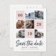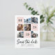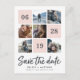 Anuncie seus próximos núpcias com essas chic salve os cartões postais de data em uma cinza cor-de-rosa e carvões, com seis de suas fotos quadradas favoritas e sua data de casamento em um layout nivelado. "Save the Date" (Salvar a data) aparece abaixo em um novo tipo de marcador de pincel de script manual casual. Personalize com seus nomes e local de casamento em carvão rico e adicione detalhes adicionais às costas, incluindo seu site de casamento e seu endereço de retorno.