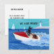 Cartão postal de anúncio de novo endereço da Cool Summer Labradors. Pintura caprichosa e engraçada de Labrador de verão pintada por Naomi Ochiai. Cães super legais da raça Labrador Retriever estão se divertindo com seu barco a motor no mar. O motorista do Labrador amarelo está tão tranquilo quanto o gelo!! O Labrador preto está posando como uma estrela!! E o Labrador chocolate está se segurando firme por um fio. Ótimo para os amantes de cães que amam Labradores. Linda vista de verão com Labradores, mar, um barco e um farol.
