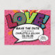 Apresentando confete de corações amorosos, um humorístico divertido, legal e moderno inspirado, salve o cartão que coloca o wham, zap, pow no seu anúncio de casamento. O inverso apresenta as suas informações adicionais de eventos. Projetado por Thisnotme©