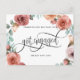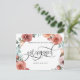 Acaba de ficar noiva? Parabéns! Compartilhe a grande notícia com a família e amigos com este elegante cartão postal de anúncio de noivado! Desenho sofisticado com uma grinalda floral pintada à mão em tons de rosa beije, pêssego, rosa poeirento, menta azul e verde, e no centro seus nomes e a frase "Ficamos noivos" em bela caligrafia manuscrita. Possibilidade de adicionar sua própria mensagem e incluir informações adicionais (como detalhes da festa de noivado ou informações de "reserve a data") se desejar, para adicionar mais linhas de texto você pode selecionar personalizar ainda mais. Verso com elementos de caligrafia manuscrita e detalhes florais na parte inferior.