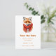 Save the date postcard with an adorable illustration featuring a cute little red fox face