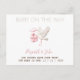 A cute stork illustration pregnancy announcement saying a baby is on the way.