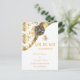 Cartão Postal De Anúncio Damasco branco e dourado para aviso de data