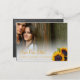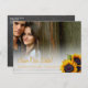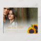 Casamento de outono/outono moderno salve o cartão postal com um belo buquê de girassóis. Insira suas informações na parte frontal na inscrição de fundo do quadro de proteção da cinza escura. Perfeito para um casamento rústico e elegante de girassóis no verão ou no outono.