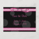 O texto neste cartão postal de "save the date" com fita e laço de bolinhas rosa choque, preto e branco é totalmente personalizável. Fica bonito com o texto branco também e você pode alterar isso com a opção de personalização. Este cartão de "save the date" com bolinhas rosa e preto está atualmente personalizado para um casamento, mas também funcionaria bem como um cartão de "save the date" para aniversário, chá de noiva ou possivelmente formatura do ensino médio. Este faz parte de um conjunto temático.