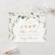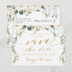 Cartão postal de anúncio de data de salva de casamento rústico de peônias brancas e folhagens prateadas.
