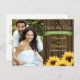 ADICIONE SUA FOTO DE NOIVADO FAVORITA A ESTES CARDS POSTAIS DE "SAVE THE DATE" DE GIRASSÓIS COM UM ENCANTADOR ESTILO RURAL E RÚSTICO COM UMA SERQUILHA DE MADEIRA E/OU FUNDO DE BARRIL COM ESTILO DE MADEIRA COM ACABAMENTO EM PREGO, DESIGN DE FAIXA DE RIBBON IMPRESSA EM VERDE-APPLE GRASS E UM BOUQUET DE GIRASSÓIS NA PARTE INFERIOR DO CARTÃO. O VERSO DESTE CARTÃO POSTAL PODE SER PERSONALIZADO COM SUA MENSAGEM. ESTES "SAVE THE DATE" COMPLEMENTAM UM CASAMENTO COM TEMA FARM, FARMHOUSE, BARN OU BARNYARD. ENTRE EM CONTATO COM O DESIGNER, CHRISSYH@CHRISSYHSTUDIOS.COM, SE VOCÊ PRECIS