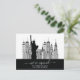 Anúncio em Movimento da Cena de Cidade Moderna com uma paisagem de cidade negra com a estátua da liberdade colocada sobre um fundo branco.