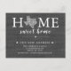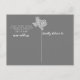 Modelo de anúncio de mudança para casa nova, com destaque para o estado do TEXAS, sobre um fundo de tecido de aniagem cinza. Vire o cartão para ver o lado posterior personalizável.