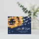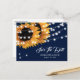 Esses cartões-postais de "save the date" de casamento rústico com girassóis em um fundo de aniagem azul-marinho são ideais para uma festa de casamento rústica azul-marinho inspirada em girassóis. Itens combinando disponíveis.