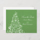 Simples, porém muito elegante cartão postal de Save the Date do Feriado Brilhante em verde com uma árvore de Natal espiralada decorada com lâmpadas cintilantes iluminadas. Este adorável cartão postal de save the date é perfeito para anunciar um casamento de Natal ou inverno. Fácil de personalizar, basta adicionar os detalhes do casamento nos campos de texto fornecidos. Clique no botão "Personalizar" para mais opções de personalização. NOTA: ESTE É UM DESIGN DE ARTE DIGITAL (PLANA). O DESIGN É CRIADO PARA SIMULAR A APARÊNCIA DE UMA ÁRVORE DE NATAL ILUMINADA.