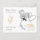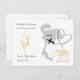 Cartão de save the date de casamento de destino elegante para casais que se casam na Tailândia. Com motivos dourados inspirados em símbolos do Budismo, um mapa em silhueta cinza prateado e elefantes tailandeses brancos sortudos. Muito bonito e fácil de personalizar com seus detalhes pessoais.
