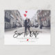 Divertido e engraçado, moderno script de pincel Salve nosso cartão postal Data, um coração vermelho com cor de fundo DIY. Copyright © 2016-2019 Bombino Designs.