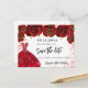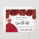 Uma garota e moda Salve o cartão de data para uma doce festa de aniversário 16, 16. Rosas pretas decoradas em fundo preto, faxes de brilho dourado e um vestido de ouro. Personalize e adicione uma data e nome/idade. O texto: Salvar a Data é gravado com um script de estilo com letra de tendência grande.