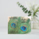 Fotografia romântica de penas de pavão com um toque de ouro impressionante. Estas penas de pavão têm uma cor bonita e esta é uma forma excelente de deixar as pessoas saberem salvar a data do seu casamento. O claro fundo de ouro traz as cores nos olhos da pena de pavão.
