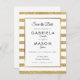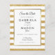 Com listras douradas clássicas, este elegante cartão de data save apresenta uma elegante borda de folha de ouro falso que enquadra seu salvamento os detalhes de data definidos na tipografia quic. Projetado por Thisnotme©
