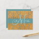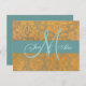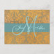 Dourado Damask Save the Date Postcard | Azul com monograma inicial.