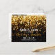 Este cartão-postal deslumbrante de Save the Date certamente vai impressionar seus convidados. Apresenta orbes de luz cintilantes em dourado brilhante que desvanecem para um fundo preto sutil. Perfeito para um casamento elegante e sofisticado.