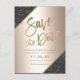 Cartão Postal De Anúncio Dourado script de brilho metálico negro salvar a d