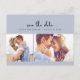Convide seus entes queridos para o seu dia especial com esta foto moderna, azul e empoeirada, salve o cartão-postal. Apresentando uma design contemporânea, este cartão postal é a forma perfeita de anunciar o seu próximo casamento e pedir a todos que reservem a data do seu casamento.