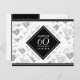Este cartão-postal é a maneira simples, porém bonita, de lembrar familiares e amigos de guardar a data das celebrações do aniversário de 60 anos de casamento. Letreiro elegante em preto e branco serifado e sem serifa com confetes de diamante estilizados em um fundo branco adicionam um toque memorável para essa ocasião especial e marco extraordinário. Personalize como desejar com os nomes do casal feliz, data do local de celebração, endereço e horário no verso.
