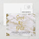 Cartão Postal De Anúncio Elegante Dourado e Marble Salve o Cartão de Data