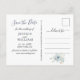 Elegante Anúncio de Cartão Postal de Salvar a Data do Casamento com Folhagem Azul Empoeirado.
