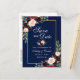 Cartão Postal De Anúncio Elegante Salve a Data Floral Borgonha Dourado Azul