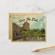 Cartões-postais vintage Escócia Salve a Data com o Castelo Eilean Donan. Este design retrô de meados do século é a maneira perfeita de reunir convidados para o seu casamento em destino escocês.