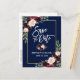 Cartão Postal De Anúncio Escrita em Escova Azul Floral Salva a Data