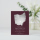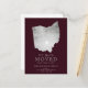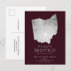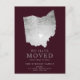 envie seu novo endereço para amigos e família com este moderno mapa de burgundy e folha prateada do estado de Ohio com tipografia moderna. Anúncio perfeito. Mova o coração para a sua localização.