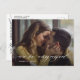 Anúncio do noivado moderno.elegante com foto do solteiro, script de caligrafia, nomes na frente e mais detalhes na parte traseira. Perfeito por compartilhar suas grandes notícias com familiares e amigos.