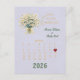 Para o casamento informal, envie a sua "Salve as Datas" nestes cartões postais bonito e esqueça de combinar com todos os detalhes. Uma imagem de cor sólida com um design floral no canto, um calendário para o mês do casamento com um coração vermelho na data do casamento. Para casamentos em anos futuros, basta substituir o calendário pelo ano escolhido. O texto curvado em cores de coordenação termina na frente. As costas são uma pequena mensagem de convite com a assinatura da noiva e do noivo. Com exceção de dezembro, que é um calendário original de 2025, o resto dos meses são as datas originais do calendário para 2026.