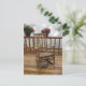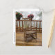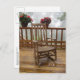 Uma cadeira de balanço de madeira depois de um chá de chuva com nevoeiro no fundo. Adicione sua própria mensagem e personalize. Fotografia de Minerva Bloom.