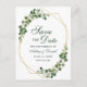 Cartão Postal De Anúncio Eucalipto Botânico Verde Dourado Salvar a Data