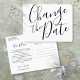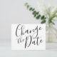 Este cartão de mudança de data moderna pode ser personalizado com as informações do seu adiamento. O verso tem detalhes adicionais, incluindo o site do seu casamento, com o seu endereço de retorno e espaço para o endereço do destinatário. Criado por Thisisnotme©