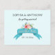 Cartão Postal De Anúncio Faixa Azul Elegante e Faixa Floral Salvar a Data